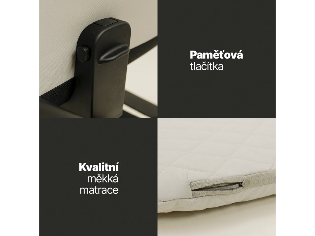 Výškovo nastaviteľné sedenie aj strieška (3 úrovne)