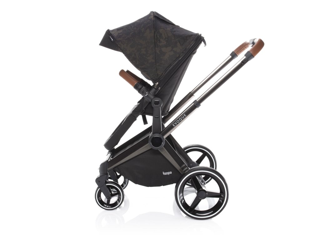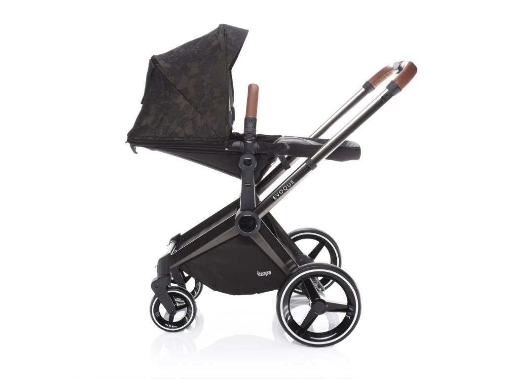 Kočík Zopa Evoque je dizajnový ale zároveň praktický kočík pre deti od narodenia do 15 kilogramov. Ide o dvojkombináciu, kedy sa z rámu priestranné, hlbokej korby vytvorí športové sedenie. Športová sedačka je polohovateľná a možno umiestni po i proti smeru jazdy. Dieťa chráni päťbodový bezpečnostný pás.