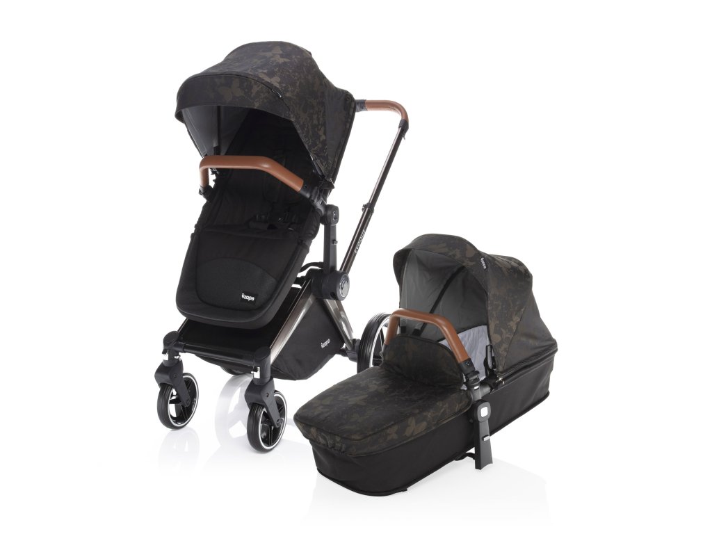 Podvozok ponúkame v štyroch farebných kombináciách. K podvozku si môžete vybrať farebný set podľa svojho vkusu. Set obsahuje striešku so zabudovanou slnečnou clonou pre korbu i športové sedenie, nánožník hlbokej korby, polstrovanie bezpečnostných pásov športového sedenie, nánožník pre športové sedenie.