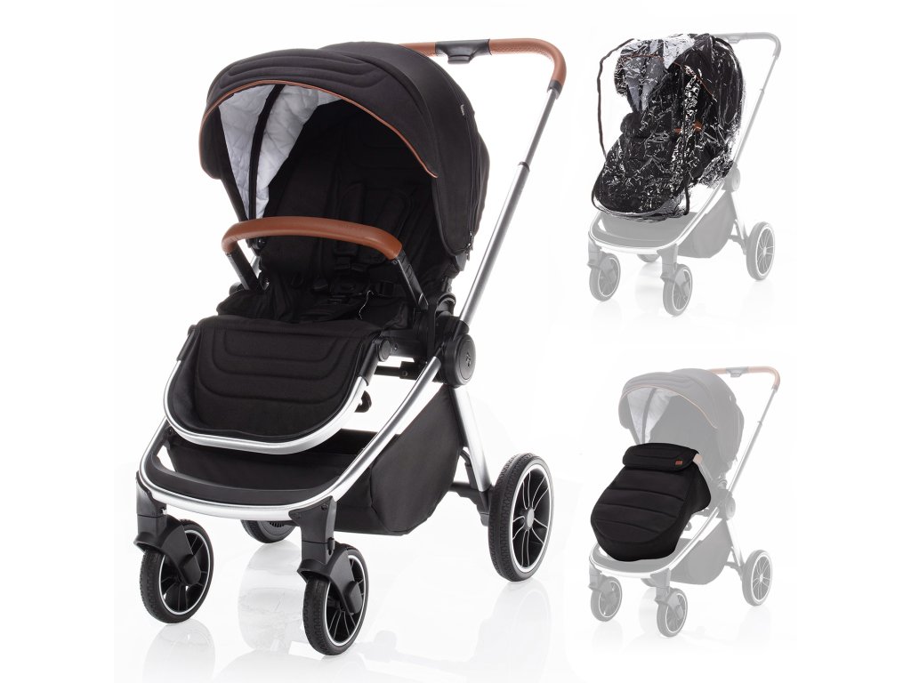 Ak ste vyššieho vzrastu, u kočíku iste oceníte výškovo nastaviteľnú rukoväť, ktorá je, rovnako ako hrazda, vyrobená z eko-kože. Čo tiež podčiarkuje moderný dizajn kočíka. Pre ľahšiu manipuláciu môžete hrazdu šikovne odopnúť a odkloniť na stranu. Tým si uľahčíte vkladanie dieťaťa do kočíka, kde ho bezpečne pripútate 5bodovým bezpečnosťným pásom. Pre zaistenie kočíka samozrejme nechýba ani centrálna brzda.